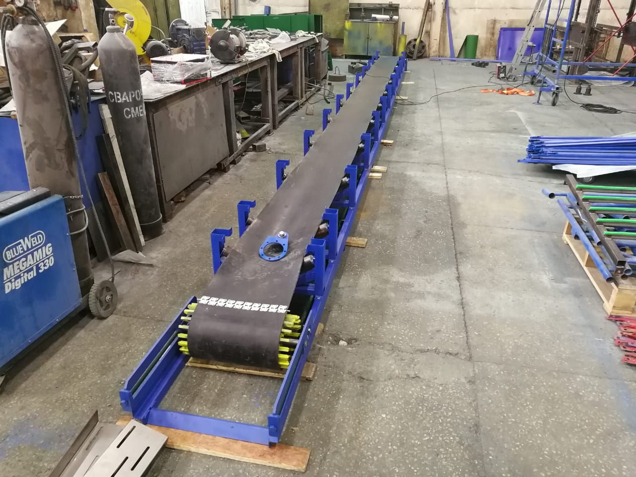 Также транспортер может быть дополнен колесными опорами, что делает его мобильным и позволяет использовать в нужной вам сейчас производственной зоне.