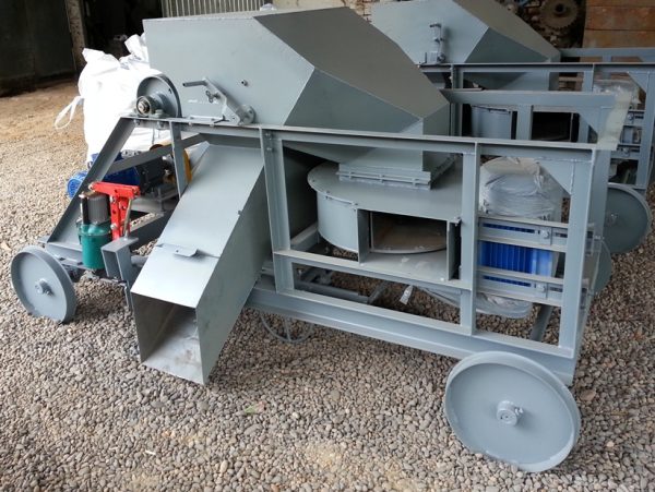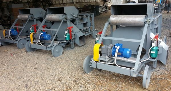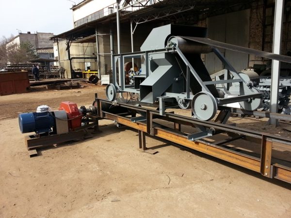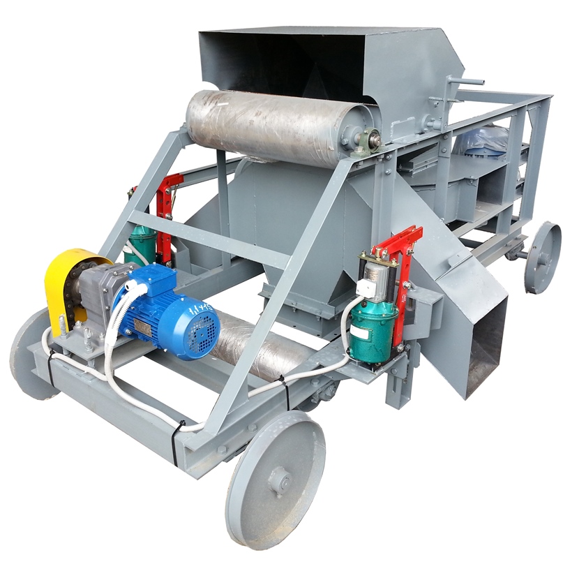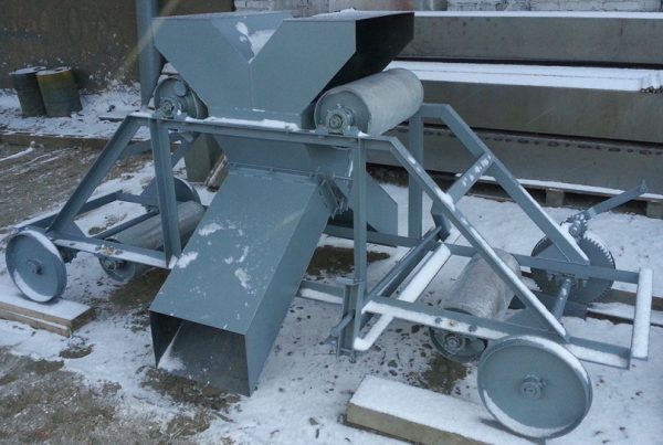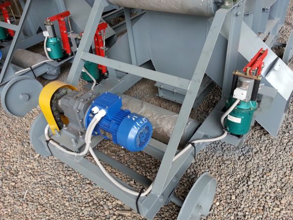 Применяется для разгрузки ленточного транспортера в любом месте по длине. Тележка имеет раму смонтированную на четырех колесах, на раме установлены два барабана и разгрузочная воронка (может быть с перекедным клапаном, который рычагом перебрасывает в нужное направление). В разгрузочной воронке, для увеличения дальности разброса зерна, может быть установлена крыльчатка, которая вращается от электродвигателя.